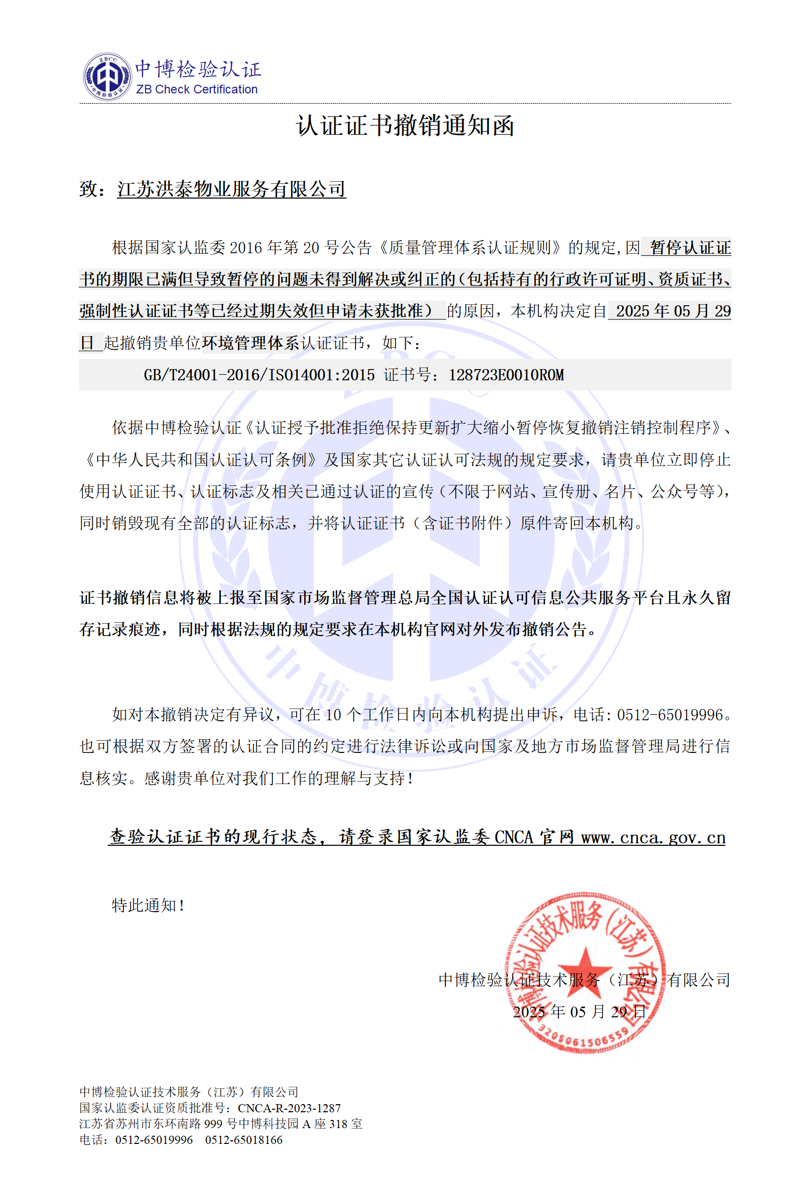 2、证书暂停/撤销信息将被上报至国家市场监督管理总局全国认证认可信息公共服务平台且永久留存暂停/撤销记录痕迹。
